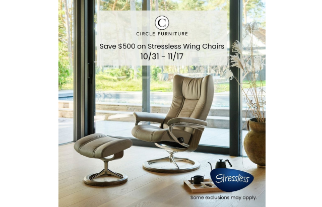 Indulge in quality and comfort and receive $500 off the Stressless® Wing Recliner (Paloma leather colors only) a modern recliner that provides a soft yet supportive sit and allows you to adjust with ease.