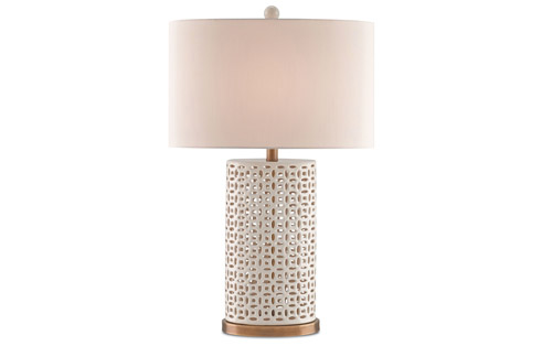 The Bellemeade Table Lamp is characterized by its beautiful base made from ceramic with a decorative fretwork design. Brass accents and a warm honey shade enhance this lamp’s appeal, giving you an elegant accent piece for any end table.