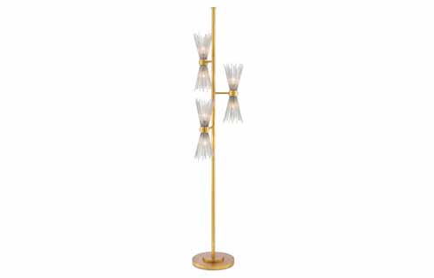 The Novatude Floor Lamp dazzles in a gold leaf finish. Its one-of-a-kind design features three spiked shades dressed in silver and positioned at different angles to ensure sufficient lighting throughout any space.