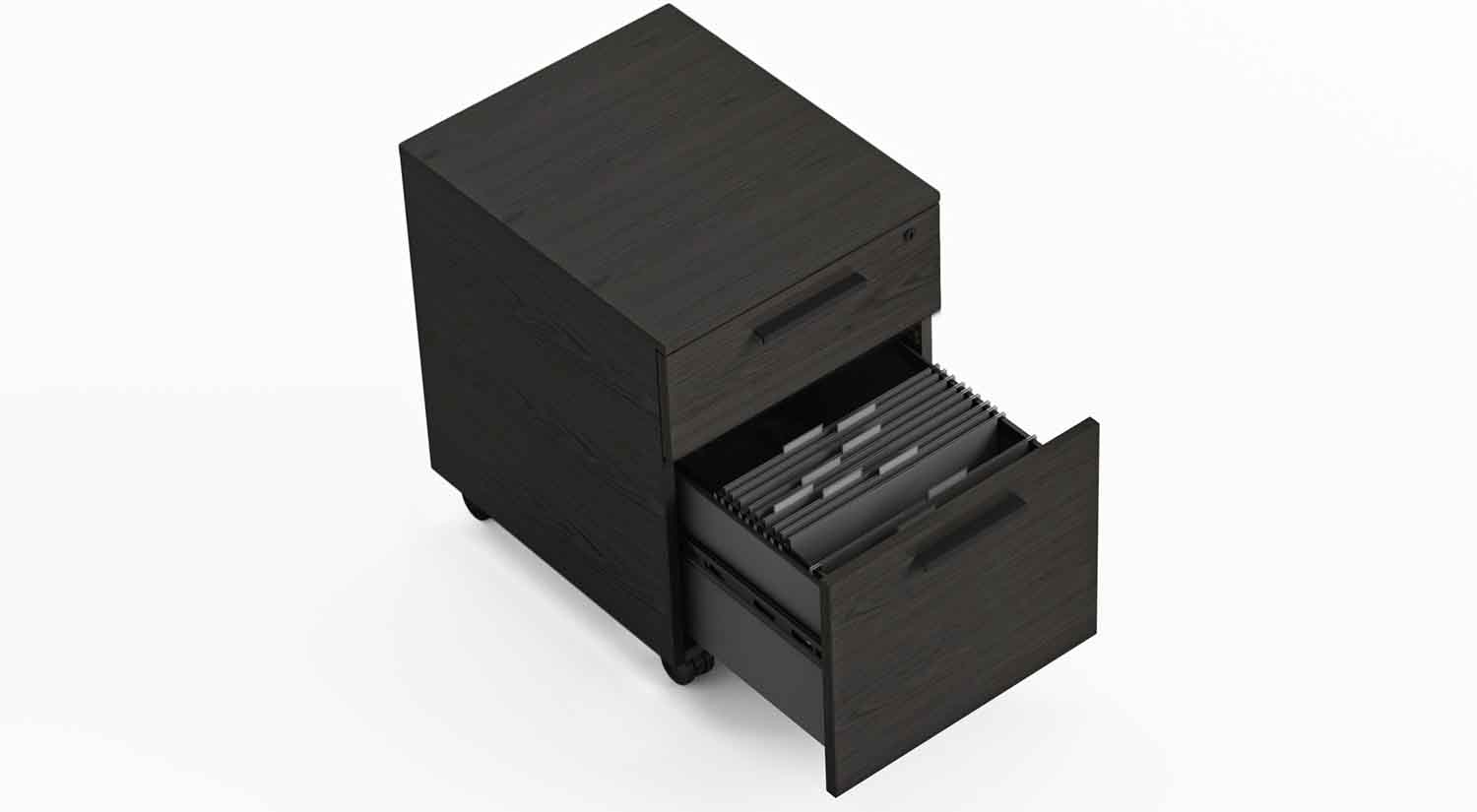 With the Linea Mobile File, you can stay organized and work efficiently. This two-drawer cabinet features locking wheels, secure storage, and an adjustable filing system. Its versatile design fits seamlessly underneath any Linea desk or functions as a compact printer stand.