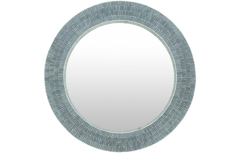 The Natalia Mirror will decorate any room or hallway with its understated beauty and coastal feel. Its round frame is detailed with an in-laid mother of pearl, giving it a soft, elegant sheen.