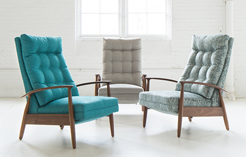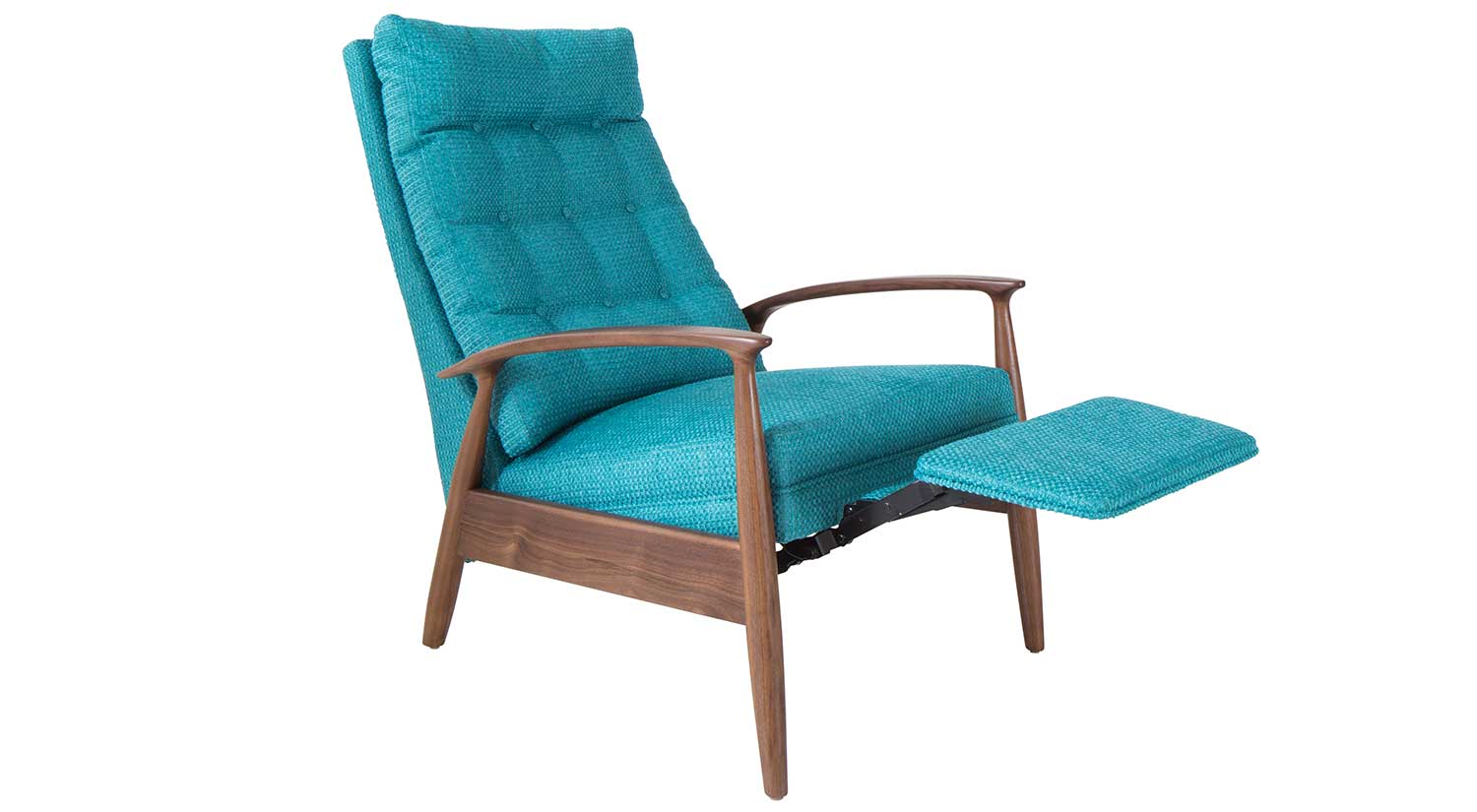 The Viceroy Recliner is a designer's dream! Designed by Milo Baughman in 1965 this recliner is available in a multitude of beautiful fabrics or leathers. The exposed wood frame is hand crated solid walnut for stunning yet simple elegance.