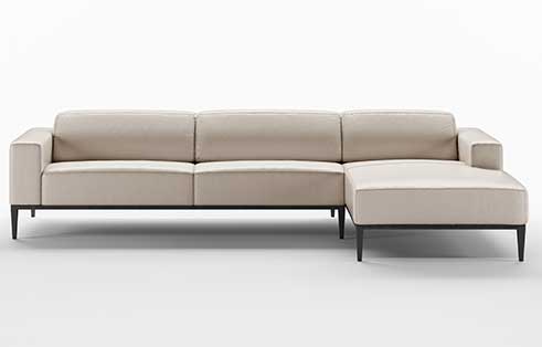 The Ryker collection is a contemporary style with tall, dramatic legs that are available in metal or wood. The innovative back cushion is adjustable so it can transition between a low profile to a deep high back profile. Available in a wide variety of leathers and fabric.